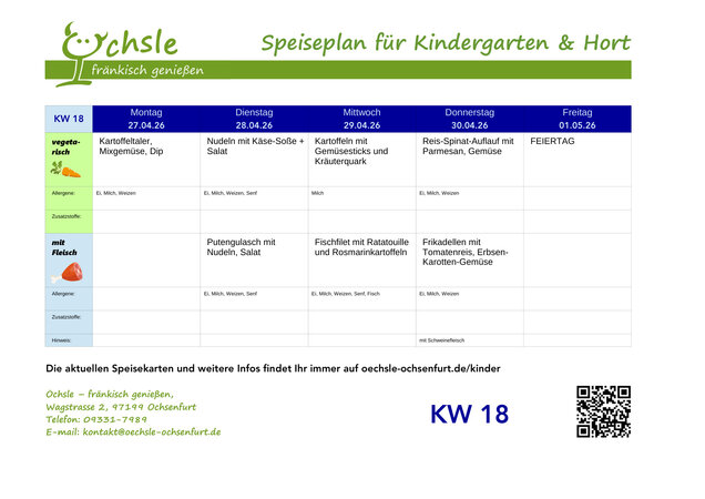 Öchsle bringt in Schulen, Kindergärten und Horten frische, hochwertige Menüs auf den Tisch. Vielfalt ist unsere Stärke, wir stimmen den Speiseplan individuell auf die Bedürfnisse Ihrer Einrichtung ab. Unsere Küche schmeckt Kindern und Jugendlichen – weil wir abwechslungsreich kochen und ihre Geschmacksvorlieben kennen. Dazu gehören regelmäßig fleischlose Gerichte – auch bei den Kids ist kreative vegetarische Küche angesagt. Wir beraten Sie gerne.